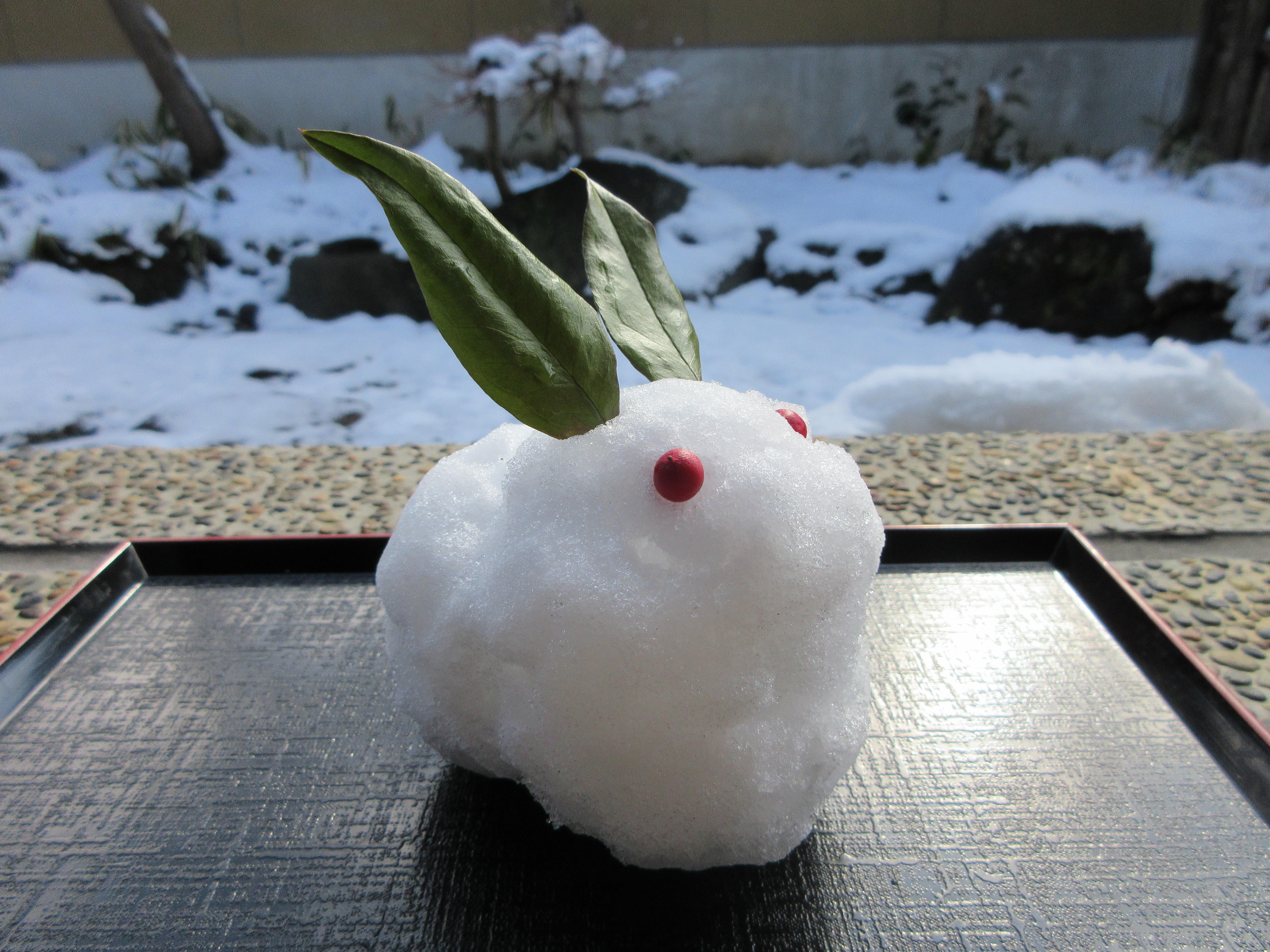 立春なのに、新庄市・最上郡内では昨日の夜から朝まで雪が降り、久しぶりに約10㎝積もりました。日中の太陽で溶け始めていますが、なんだか雪が懐かしい感覚になったのは私だけでしょうか...?と思いながら、小さい頃を思い出して「雪うさぎ」を作ってみました。笑