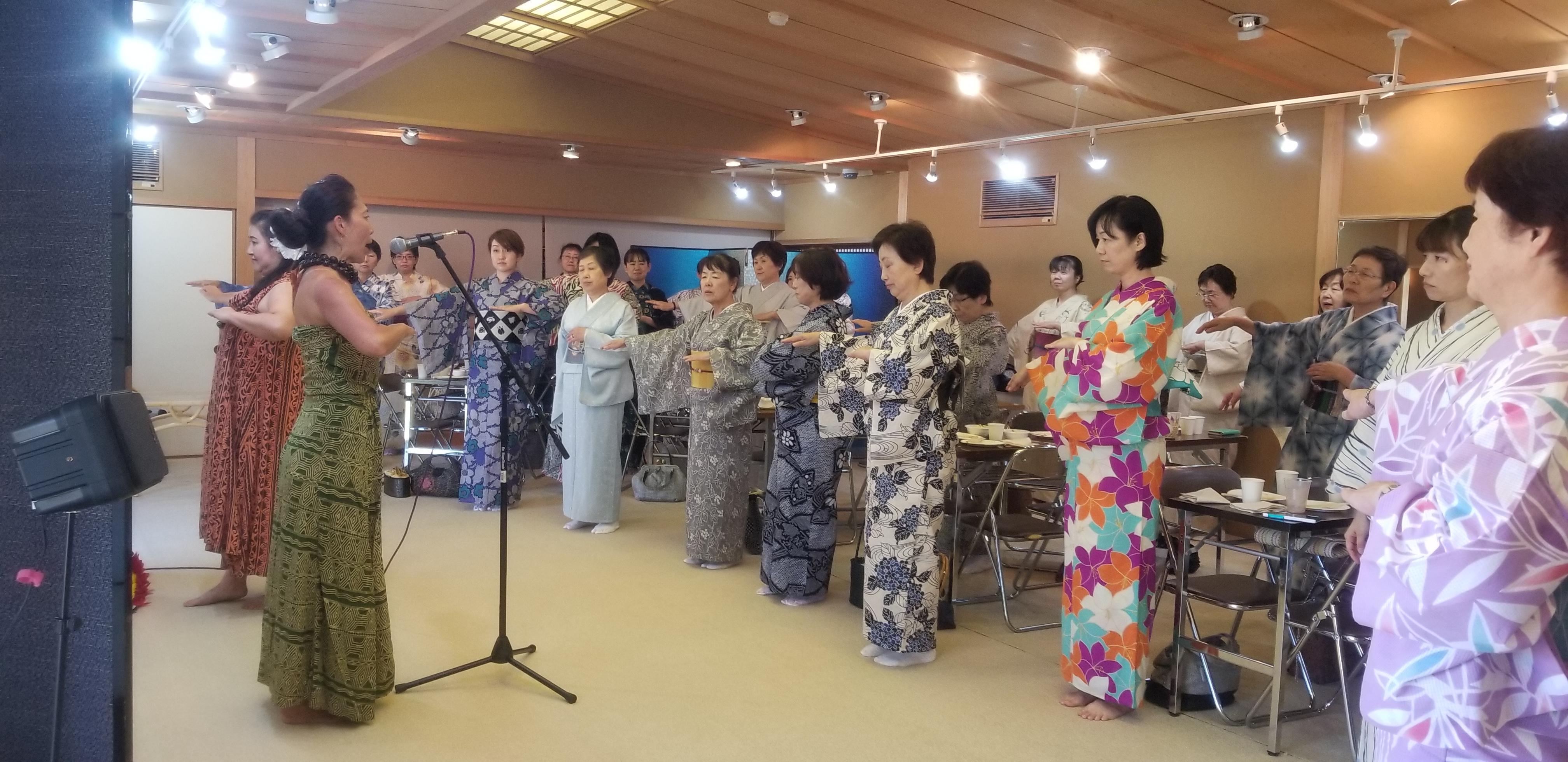 先生にご指導いただきながらご参加頂いた方皆さまでフラダンス♪
