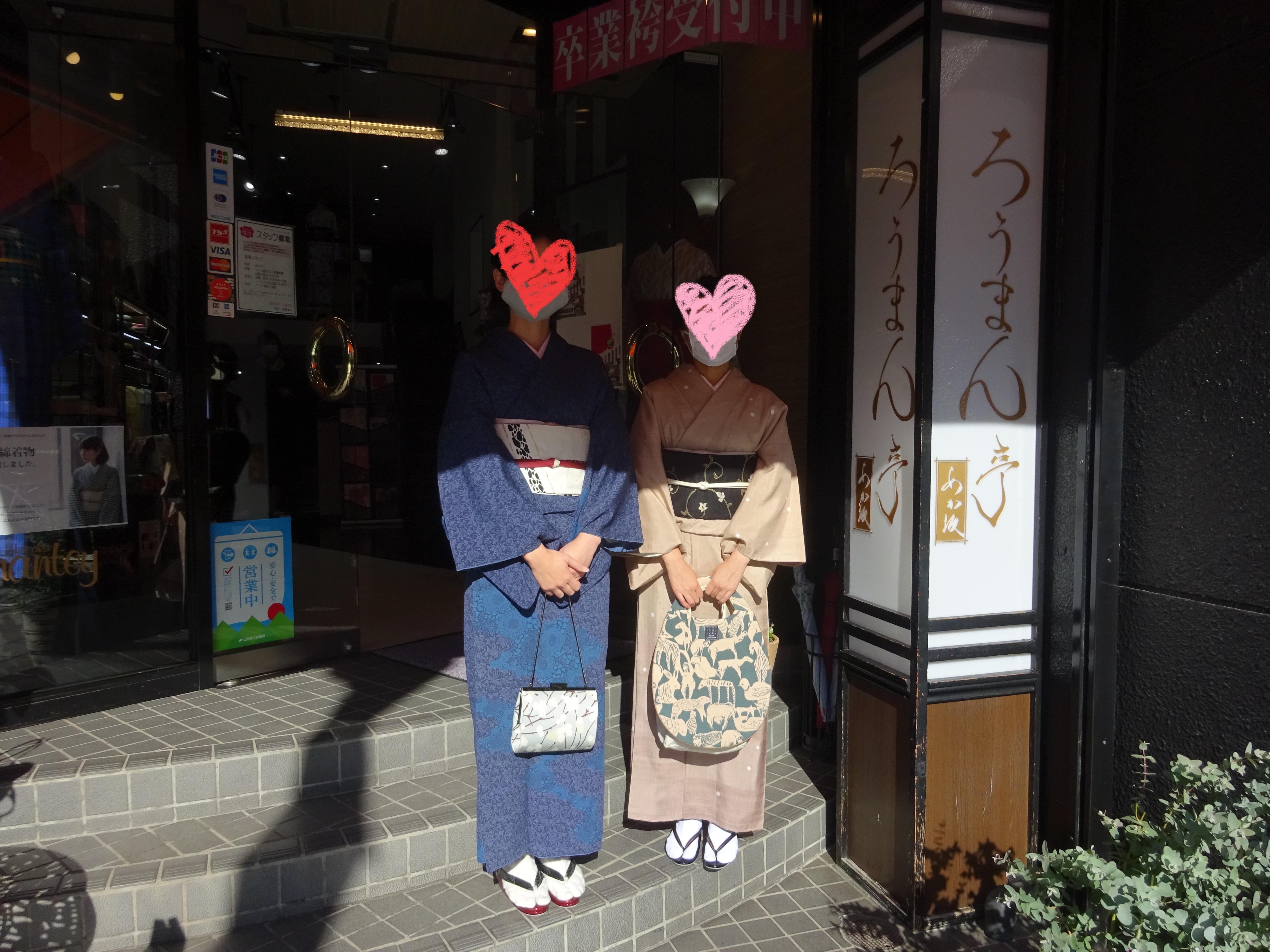 左の方が着用していらっしゃるのは、レンタルの着物です。